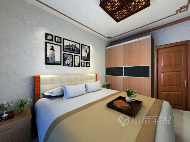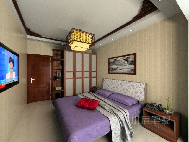 次臥室也是簡介明朗啦。。。沒有用過多的中式裝修元素 一個(gè)中式吊頂也就足夠了 ,臥室還是舒服些好 。。
