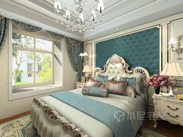 談談的藍色點綴出了整個臥室的美感與舒適感