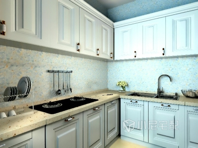 墻磚跟櫥柜色調(diào)的搭配,擺件的點綴,精致細節(jié)。