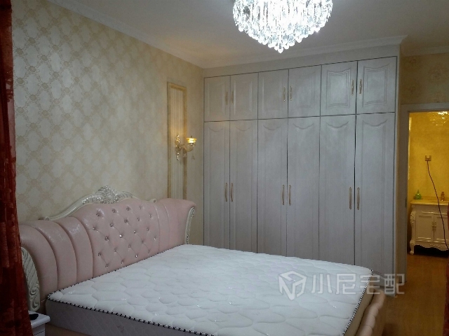 主臥衣柜吸塑門加壁紙背景使臥室更加浪漫