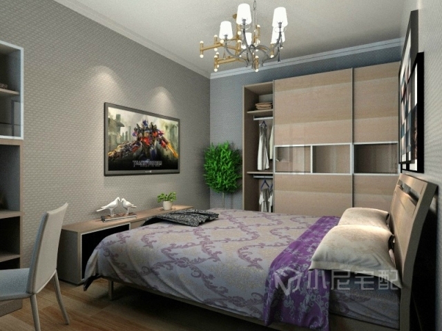 次臥采用與主臥不同的色調(diào),空間更加明亮