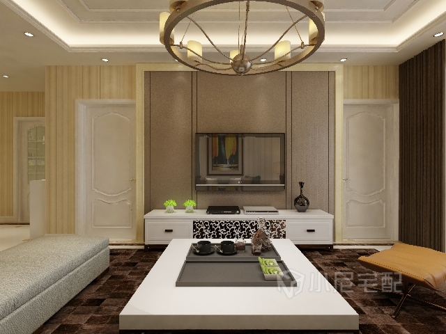 電視背景墻采用軟包形式,整體看來(lái)不會(huì)那么生硬。