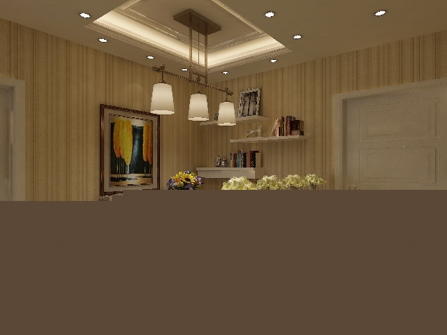 全屋采用條紋狀壁紙,可以使人感覺(jué)層高很高,顯得寬敞明亮,客廳部位
