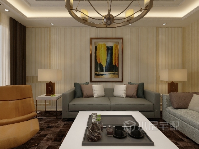 客廳用線條壁紙,突出整個(gè)空間不是那么的壓印