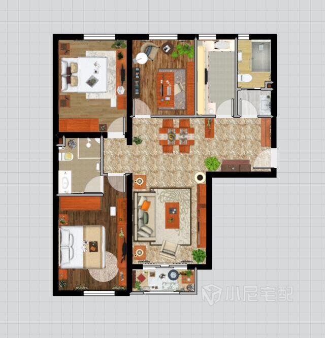 輕快明亮的基調使家更加溫馨讓人感到放松,實木家具的沉穩(wěn)大氣讓人覺得安全可靠。具有東方風情的的韻味,不失現(xiàn)代生活的方便快捷