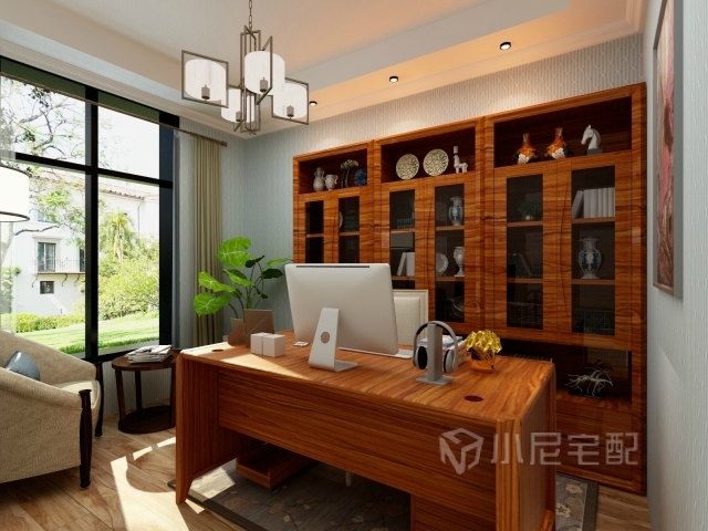 大書柜擁有強大的收納空間,工作累了坐在窗前的沙發(fā)上看看窗外的綠景休息片刻。