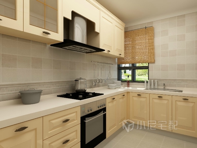 廚房選用了帶有田園風格的櫥柜,功能齊全,簡約時尚。