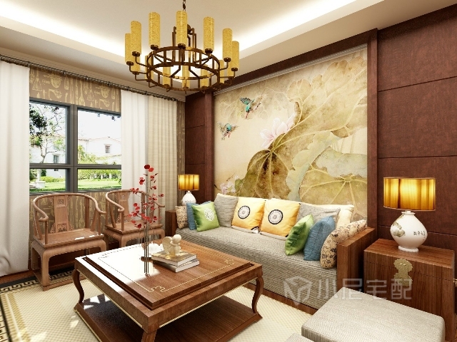 胡桃木的家具讓整個(gè)空間顯得沉穩(wěn)大氣,臺(tái)燈的樣式,茶幾邊幾的造型展現(xiàn)了濃烈的中式風(fēng)格。