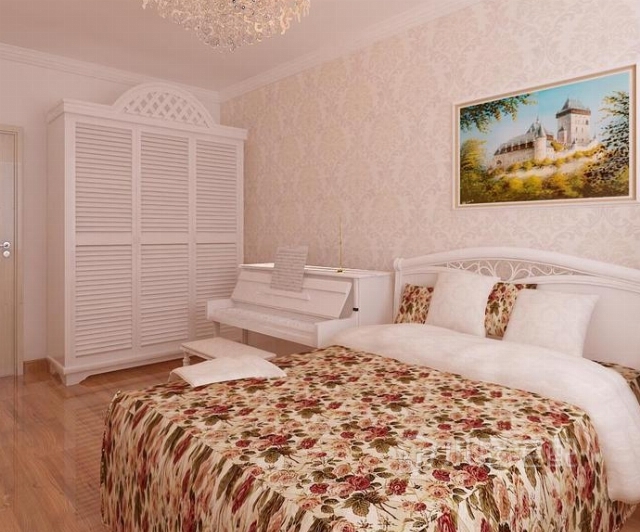 墻面以暖色大馬花格為主,配上床的碎花,唯美而不凌亂。
