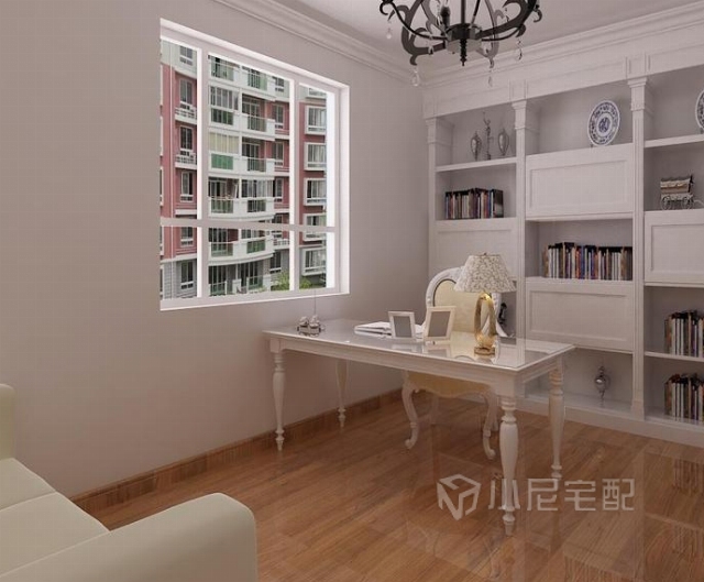 書房主要以灰白為主,給人一個(gè)安靜閱讀的地方。