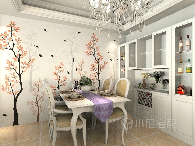 餐廳后面酒柜加上旁邊的硅藻泥墻面,溫馨貼近大自然