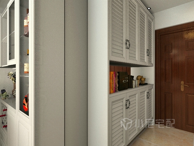 入戶客戶不喜歡呆板的掛衣板,就做了這樣百葉門鞋柜。