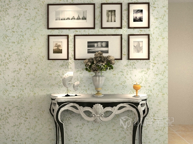 彩粒漆背景墻,前面放一個簡單的歐式小桌放走廊,不顯得空蕩蕩的。