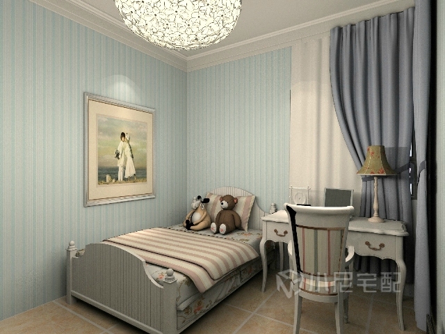 簡單線條的壁紙,小床加小書桌,簡約而不簡單。