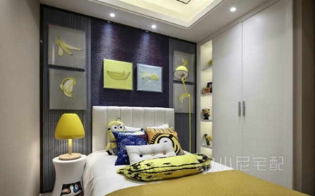 臥室在整體的黑白搭配中加了一點(diǎn)黃色,很協(xié)調(diào)