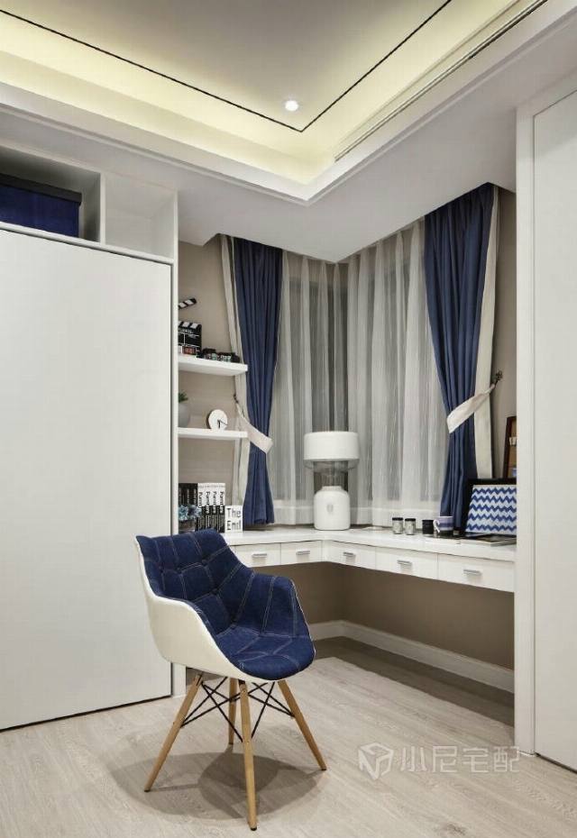 書(shū)房用藍(lán)色代替了黑色,過(guò)度自然