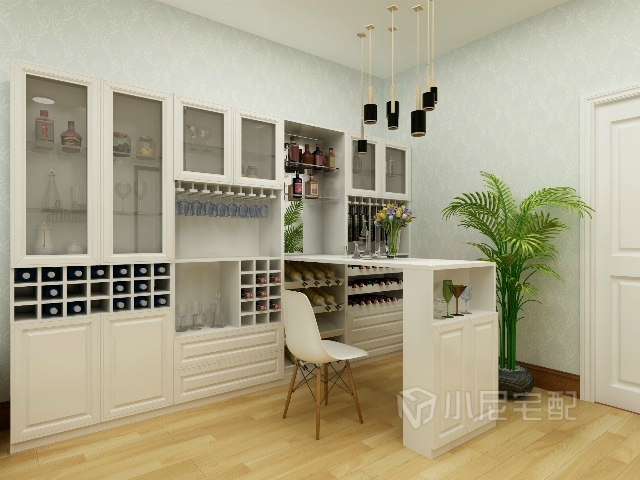 設(shè)置的酒柜和吧臺(tái),增加儲(chǔ)物功能的同時(shí)增加休閑區(qū),朋友來(lái)了可以開(kāi)個(gè)派對(duì)。