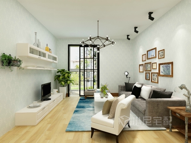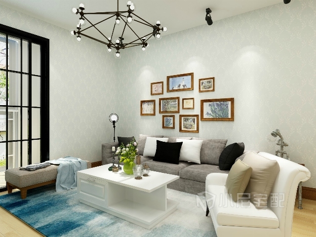 工業(yè)風(fēng)的吊燈增加現(xiàn)代感,照片墻的裝飾使空間不再單調(diào)。