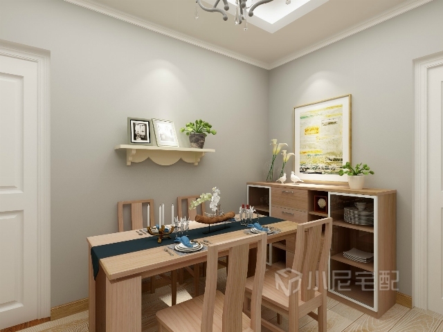 利用壁架放一些裝飾品,餐邊柜起到收納和整理的作用。