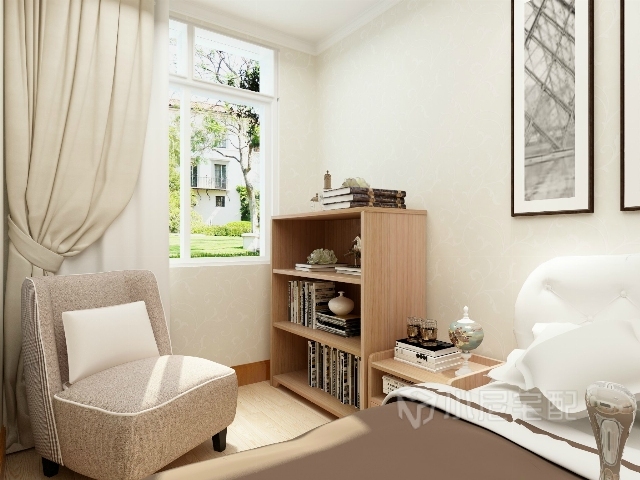 在窗前放一個(gè)小書(shū)架,一個(gè)舒適的沙發(fā),休息時(shí)坐在窗前看看書(shū),十分愜意。