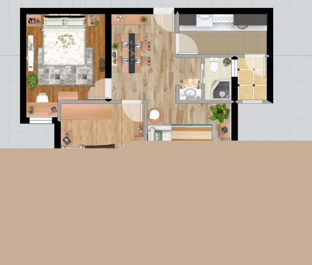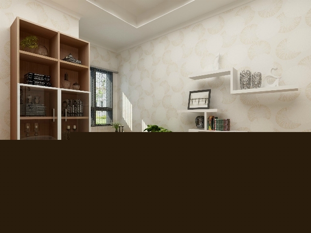 在臥室的一角放上書(shū)桌和書(shū)柜,合理的利用房間的缺角。