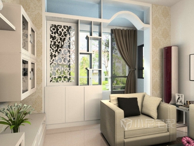 陽臺間的隔段置物架,選擇簍空元素,讓整個空間更上一個檔次