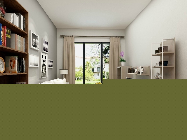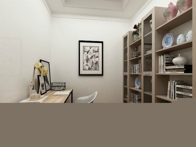 書房的空間較小,利用大書架,工業(yè)風(fēng)的書桌,造型簡(jiǎn)約大氣。