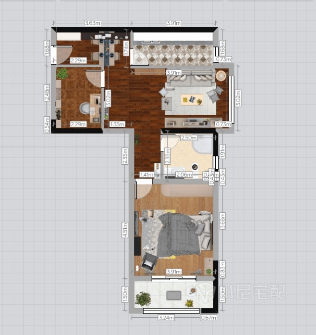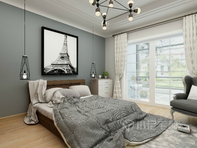 臥室選用低矮的床,灰色的墻面,現(xiàn)代的吊燈,時(shí)尚又個(gè)性。