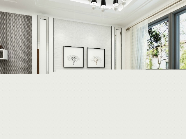 現(xiàn)代的背景墻,簡約的裝飾畫,黑白搭配的沙發(fā)顯得干凈利落。