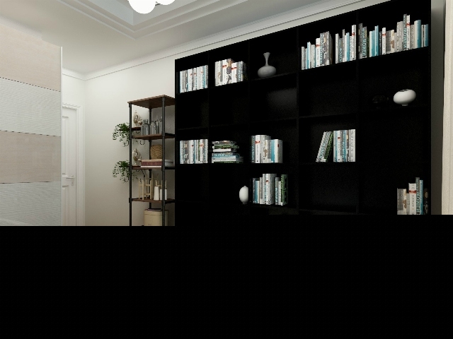 大大說到位書架彌補沒有書房的遺憾,放一些藏書和裝飾物,體現(xiàn)文藝氛圍。