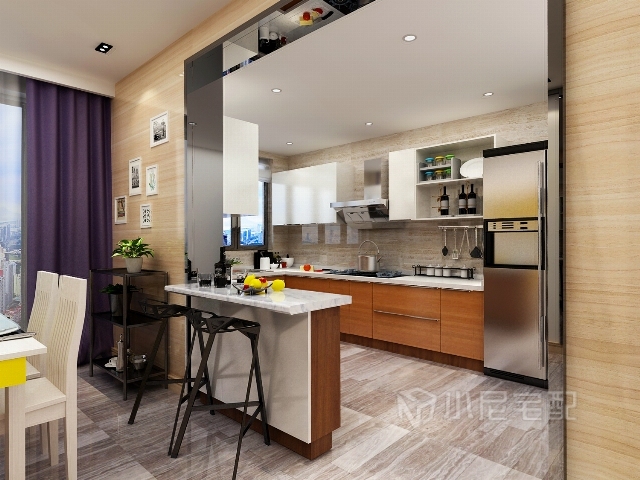 巧妙的用吧臺(tái)劃分餐廳和廚房的空間,不僅在視覺(jué)上多了延伸,還方便日常使用。