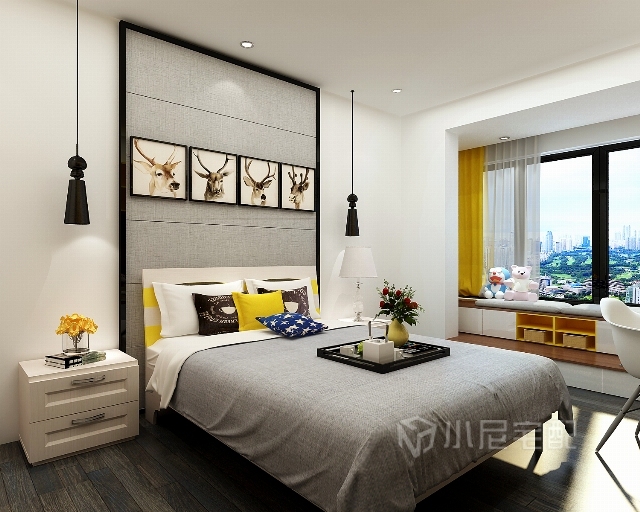 飄窗柜的設(shè)計(jì)不僅增加儲(chǔ)物空間,搭配上軟墊又可以坐在上面看書看風(fēng)景。用布質(zhì)的柔感,使整個(gè)空間營(yíng)造溫暖舒適的氛圍。