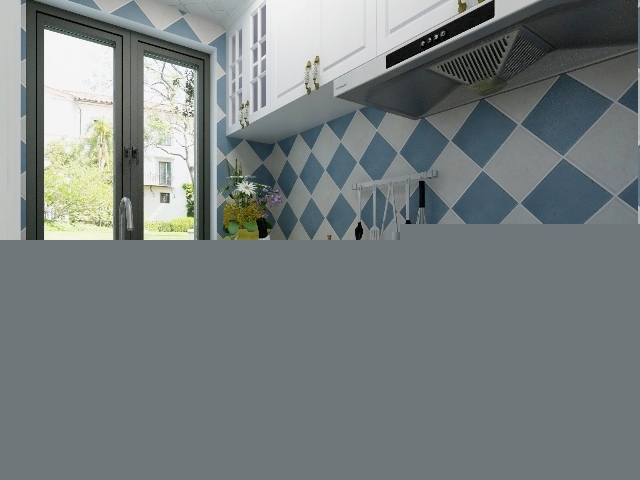 廚房用仿古磚作為背景搭配櫥柜,有些偏地中海式的田園