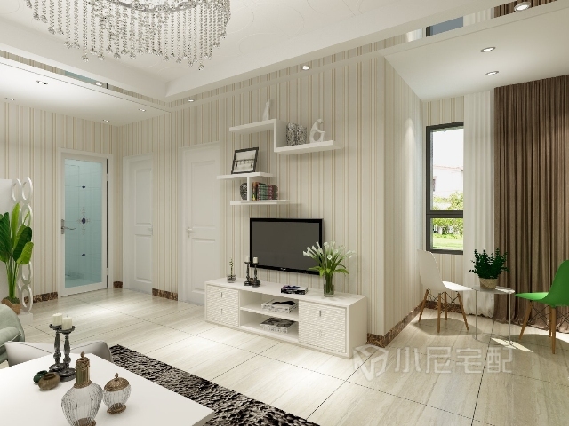 客廳采用了小面積的鏡面材質(zhì),現(xiàn)代的氣息撲面而來