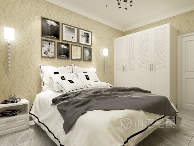 臥室采用黑白條紋墻紙,整個(gè)空間的質(zhì)感提升了起來
