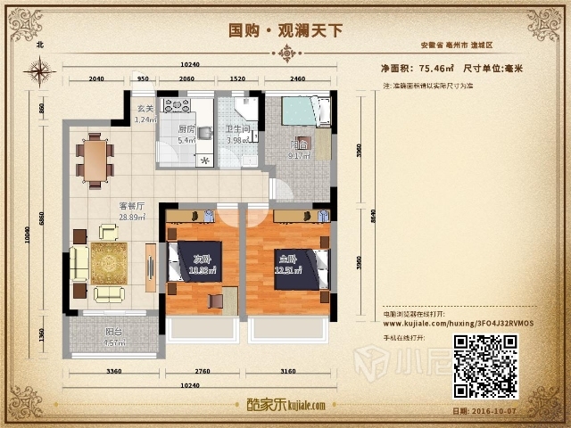 現(xiàn)代住所的開展,小家庭的組成,大家心理上的需求,期望臥室具有私密性、蔽光 性。我規(guī)劃的臥室除了擺放雙人床外,留有必定的面積擺放臥室家私,如衣柜、床頭柜、書桌,還留有必定空間能夠休閑活動。