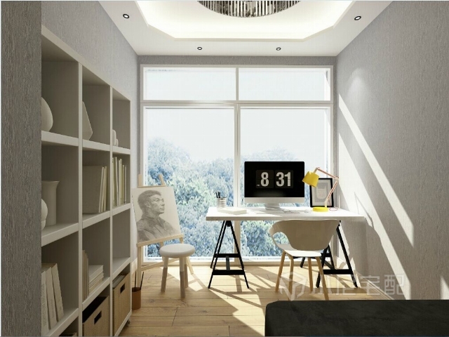 書房我是以簡(jiǎn)單的書桌和書柜、空間開敞、內(nèi)外通透,在空間平面設(shè)計(jì)中追求不受承重墻限制的自由。