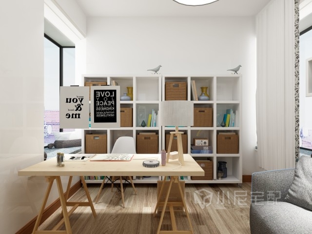 書房就以簡單的書柜書桌,又是簡歐的一種表現(xiàn)形式,簡單大方
