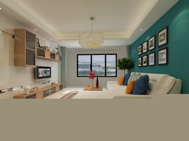 深色的背景,白白的沙發(fā),藍(lán)黃的抱枕,顏色交相呼應(yīng),整個(gè)空間看起來和諧而寧靜