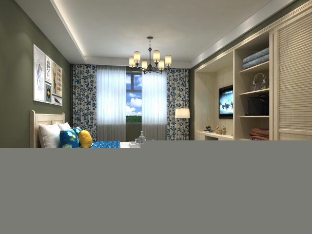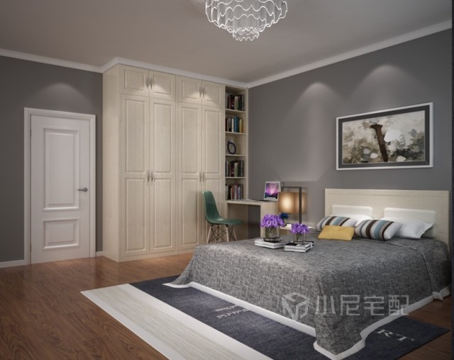 定制柜體包含了衣柜和電視柜,整面墻的設(shè)計(jì)顯得空間更加統(tǒng)一