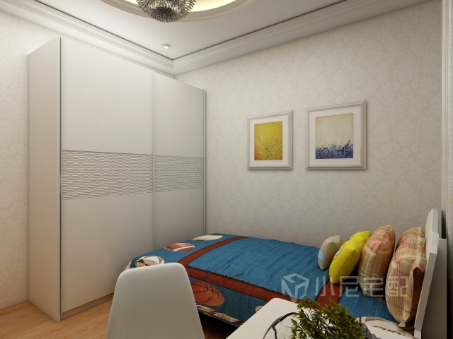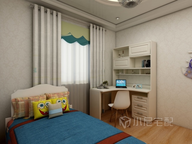 兒童房采光性好,色彩搭配比較俏皮,留有學(xué)習(xí)區(qū)域和活動(dòng)區(qū)域。