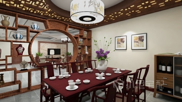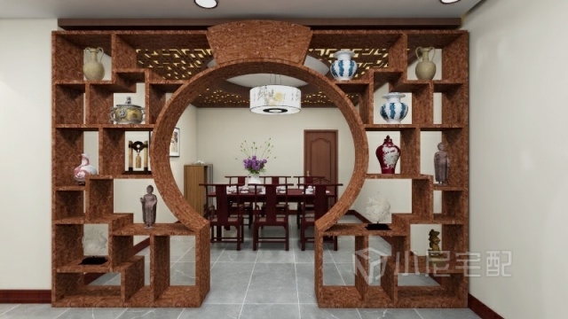 餐廳運(yùn)用的是以紅木材質(zhì)為主隔斷屏風(fēng)