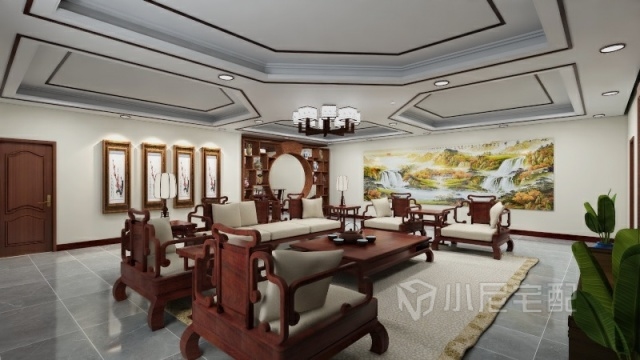 客廳運(yùn)用的是紅木材質(zhì)家具 低調(diào)沉穩(wěn) 更能凸顯業(yè)主的身份以及品味