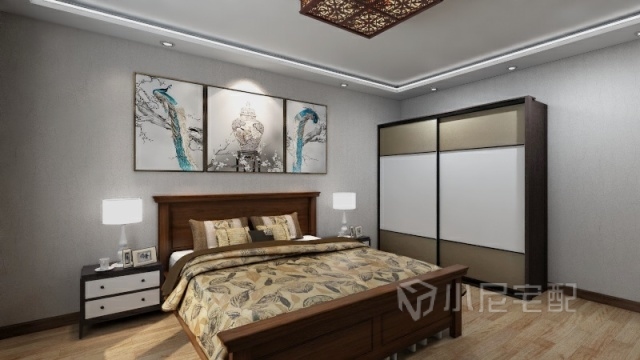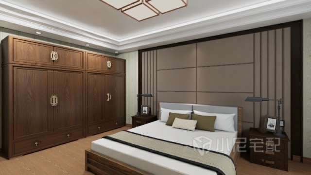 此臥室運(yùn)用的新中式風(fēng)格 清新典雅 打破了傳統(tǒng)中式氣息 不會(huì)造成審美疲勞