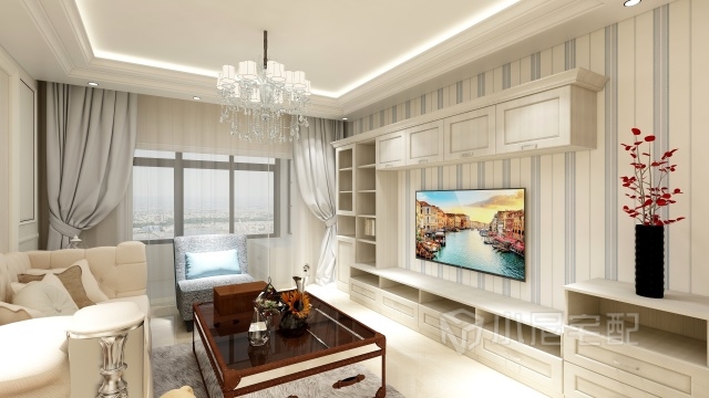 本次設(shè)計(jì)主要是簡歐風(fēng)格,維度款珠光白顏色給人一種清新典雅的感覺,仿佛脫去了繁復(fù),增加了幾分淡雅,搭配深色的茶幾,畫飾抱枕的點(diǎn)綴又增添了幾分家的味道。