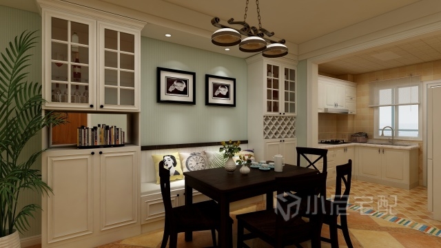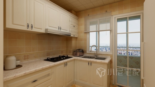 廚房是房子的最熱地帶,米黃的仿古磚,白色的櫥柜,選用淺色調(diào),給人清涼的感覺。
