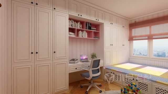 兒童房榻榻米 衣柜 學(xué)習(xí)桌 書架 暖氣柜結(jié)合一體。巧妙擴容,收納孩子海量的玩具書籍,激活“被忽略”的每一寸空間。(PS:榻榻米網(wǎng)格門是暖氣柜哦)