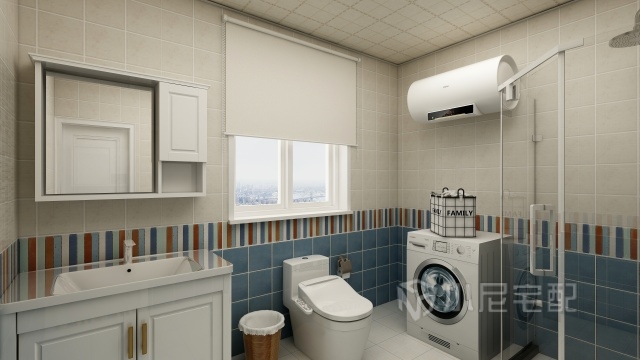 衛(wèi)生間設(shè)計淋浴房,干濕分離告別傳統(tǒng)“水漫金山",藍(lán)色與米黃的復(fù)古磚結(jié)合,色調(diào)宜人的,讓人居于其中,有一種精神的享受。