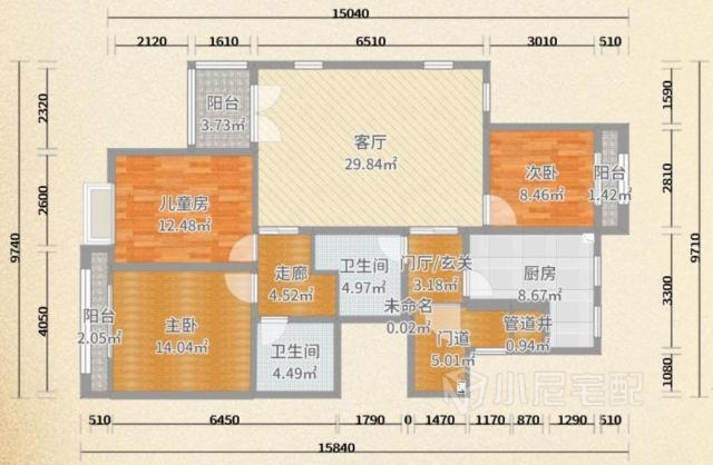 主臥和兒童房外的過(guò)道,增加儲(chǔ)物柜,增加儲(chǔ)物空間。