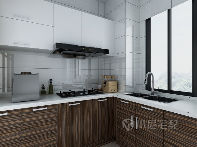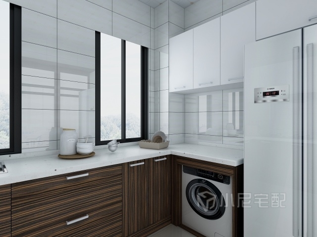 簡(jiǎn)單的平板柜門櫥柜,深淺搭配
